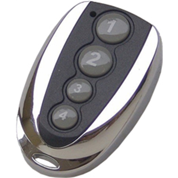 Alimentação: 12V. Cor: metálico. Cor dos botões: cinzentos. Nº de botões: 4. Tipo de bateria: A27. Tipo de código: rolling code.
